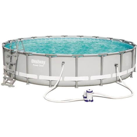 Kit piscine hors-sol tubulaire POWER STEEL FRAME POOL ronde Ø610cm, hauteur 122cm. Kit piscine complet livré avec groupe de filtration à cartouche d’une puissance de 9,463m³/h, échelle de sécurité, liner en PVC armé traité anti-UV, valve de…