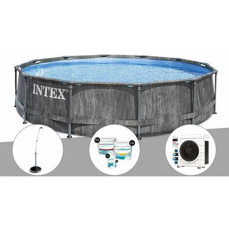Kit Piscine Tubulaire Intex Baltik Ronde 5,49 X 1,22 M + Douche Solaire + Kit De Traitement Au Chlore + Pompe à Chaleur – Gris