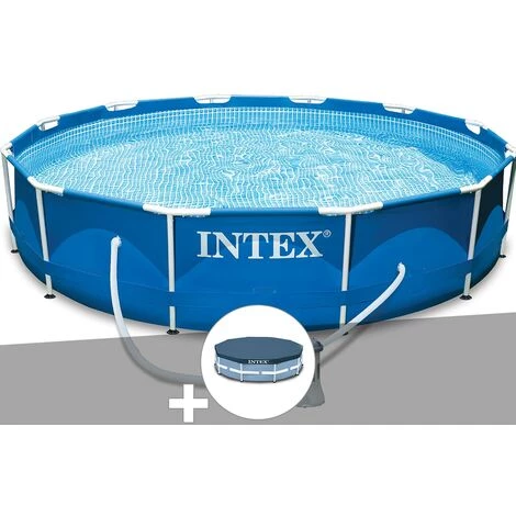Kit Piscine Tubulaire Intex Metal Frame Ronde 3,66 X 0,76 M + Bâche De Protection – Bleu