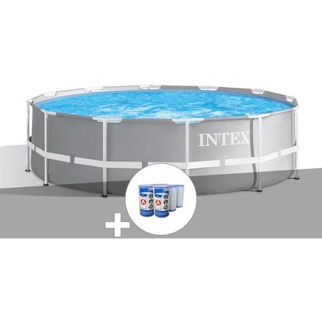 Ce kit piscine tubulaire Prism Frame ronde 3,66 x 1,22 m de la marque Intex est livrée en kit complet, à monter vous même.Il comprend :• Un liner triple épaisseur Intex gris• Les armatures (tubes) de la piscine• Un épurateur (filtre) à cartouche Intex 2,7 m³/h (type de cartouche : A) avec ses tuyaux Ø 32 mm inclus.• Une échelle de sécurité avec marches amovibles• Dimensions de la piscine : Ø 3,66 m x H.1,22 m• Espace de nage : Ø 3,66 m x H.1,07 m• Encombrement au sol : Minimum 3,66 x 3,66 mLe montage de la piscine est facile, et se réalise en 45 minutes à 2 personnes, avant le remplissage de la piscine.Cette piscine est garantie 2 ans par Intex.Découvrez le montage d’une piscine tubulaire ronde Intex en vidéo :