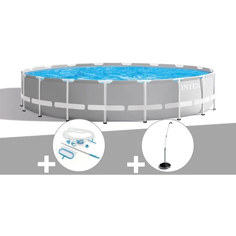 Piscine tubulaire Prism Frame ronde 5,49 x 1,22 m – Intex. Liner en PVC armé triple épaisseur gris clair.Accessoires inclus :