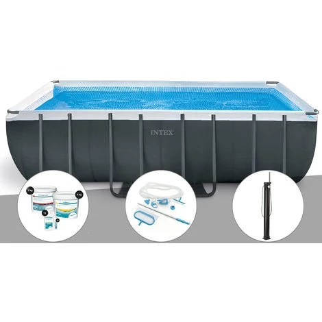 Envie d’une grande piscine à domicile? Optez pour la piscine tubulaire Ultra Silver rectangulaire 5,49 x 2,74 x 1,32 m de la marque Intex !