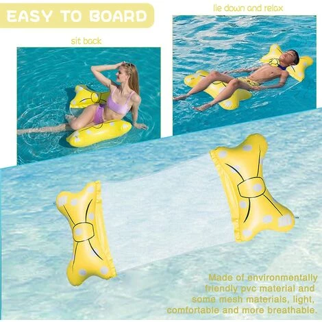 LTS FAFA Bow-Noeud Hamac Gonflable,Matelas Gonflable Flottant,Pliable Hamac D’eau,Hamac D’eau 4 En 1,Les Meilleurs Cadeaux D’été Pour Adultes Et Enfants (Jaune)