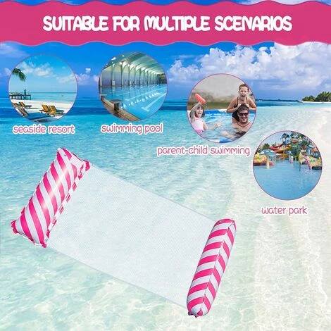 LTS FAFA Hamac Gonflable Piscine,Hamac Gonflable à Rayures,Matelas Gonflable Flottant,Pliable Hamac D’eau,Hamac D’eau 4 En 1,Les Meilleurs Cadeaux D’été Pour Adultes Et Enfants (Rose)