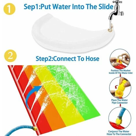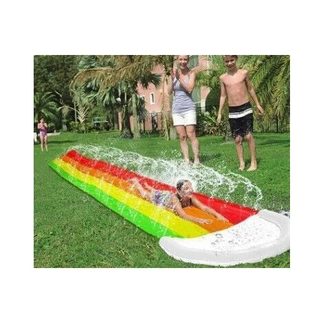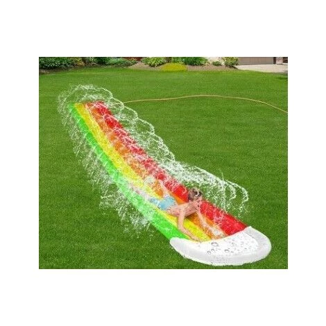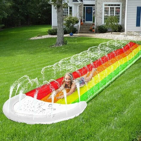 [ Toboggan aquatique 3 en 1 pour enfants ] Toboggan aquatique, toboggan et arroseur en un ! Longueur 480cm / 189″, largeur 140cm / 55″. Incroyable plaisir d’été pour les enfants de 6 ans. Pare-chocs pulvérisant de l’eau sur le côté du toboggan aquatique arc-en-ciel et un coussin rempli d’air à l’extrémité qui fonctionne comme un crash pad. [Jouet aquatique d’été] Convient pour les activités familiales estivales chaudes, anniversaire cadeau, coup de fête, jouet de jeu, jouet de jardin de pelouse, etc. Ce toboggan aquatique transformera votre parc aquatique privé ! Profitez des plaisirs de l’été ! [Arroseur d’eau] Toboggan aquatique de 15 pieds de long avec système d’arrosage à motif de pulvérisation en zigzag sur toute la longueur du toboggan pour une couverture d’eau impressionnante pour une longue glissade. Ajouter du savon pour une diapositive supplémentaire. Un grand succès auprès des enfants. Idéal pour se rafraîchir et s’amuser pendant l’été. [Facile à installer] Ce toboggan aquatique prend une minute à installer. Gonflez simplement le crash pad et fixez le toboggan aquatique à un tuyau d’arrosage. Pas de tuyau d’arrosage extérieur ? Un seau d’eau savonneuse peut également bien faire pour le toboggan aquatique Lawn pendant des heures de plaisir aquatique. [ Durable ] Le toboggan aquatique Lawn est fait d’une feuille de PVC épaisse et robuste, durable et durable. . Toboggan aquatique pour un plaisir aquatique incroyable en été !