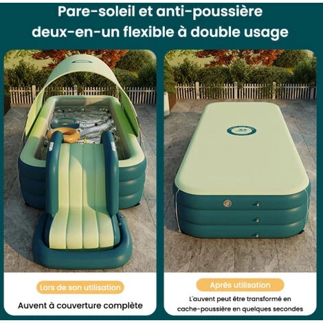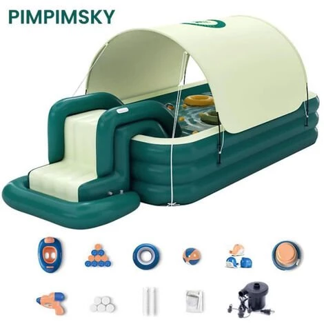 Smart 3-core 1, auvent 2-en-1, toboggan aquatique pvc allemand de qualite alimentaire, double vidange, partage par toute la famille.