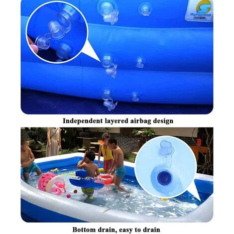 La piscine familiale dispose de 3 ou 4 chambres à air indépendantes pour assurer une excellente protection contre les fuites. Chaque chambre à air est équipée d’une version améliorée de la valve anti-fuite pour améliorer la durabilité et ajouter une sécurité supplémentaire.