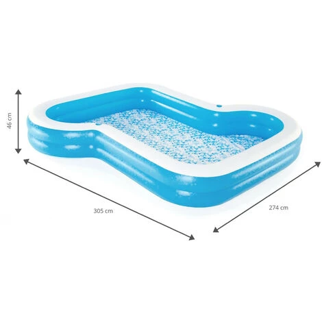 Piscine familiale gonflable pour que les enfants puissent jouer et s’amuser à l’extérieur.Il est construit avec des matériaux durables. Il présente un motif en mosaïque et une texture sophistiquée en relief. Ce modèle est équipé de deux porte-gobelets, pour garder les boissons et les snacks à proximité pendant que vous jouez dans l’eau.