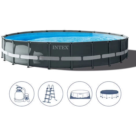 Piscine ronde Intex Ultra Xtr Frame 26334 avec structure innovante et robuste en acier et échelle avec système de sécurité, pompe avec filtre à sable, bâche de couverture et toile de base, robuste, élégante et parfaite pour des moments inoubliables de détente dans votre jardin.