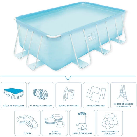Cette piscine extérieure rectangulaire est réalisée avec une structure tubulaire en acier galvanisé et PVC triple couche, capable d’assurer plaisir et détente en toute sécurité.