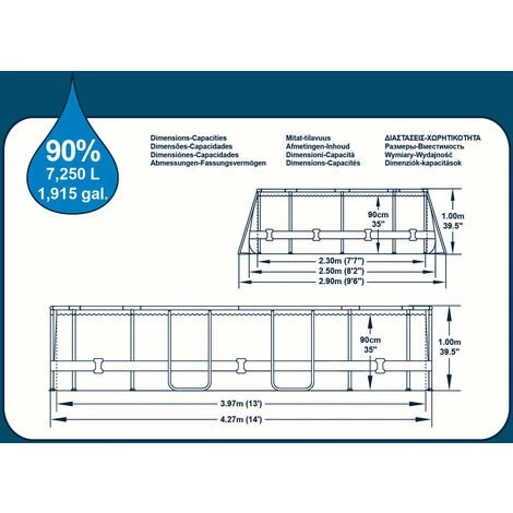 Piscine ovale hors sol conçue pour toute la famille. Rapide et facile à installer dans le jardin à la maison. Construit avec des cadres métalliques résistant à la rouille et doublé de Tritech, un matériau durable et renforcé pour la solidité et la résistance aux perforations. L’extérieur est imprimé d’un motif d’imitation de mur de pierre et comporte 2 fenêtres transparentes amusantes en dessous. Il peut être rapidement démonté pour être rangé lorsque l’été est terminé. Il comprend un filtre à cartouche de 2 006 litres/heure pour garder l’eau de la piscine propre à tout moment. Elle dispose également d’une échelle pour accéder à la piscine en toute sécurité et d’une couverture pour recouvrir la piscine lorsqu’elle n’est pas utilisée afin d’empêcher les saletés de tomber dedans. Son distributeur de produits chimiques ChemConnect maintient l’eau de la piscine propre et saine en fournissant un niveau stable de chlore. Le robinet de vidange permet de le vider rapidement. »