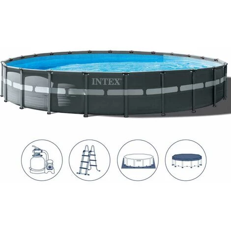 La Piscine hors-sol Intex 26340 Ultras Xtr Frame ronde avec pompe de filtrage à sable avec aérage de l’eau, bâches base/couverture et échelle de sécurité, idéale pour le divertissement de toute la famille, réalisée avec des matériaux résistants et fiables à 100%.
