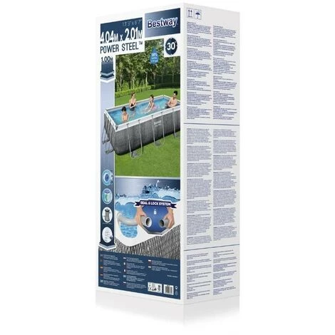 Réalisez vos rêves (et ceux de vos enfants) et barbotez cet été dans cette belle piscine rectangulaire Power Steel de Bestway. La piscine est fabriquée dans un matériau durable et durera donc des années. Le revêtement Power Steel rend la piscine très robuste et les risques de dommages sont très faibles. En outre, la piscine est équipée d’un système Seal & Lock, d’un cadre métallique résistant à la corrosion et d’une connexion sécurisée des éléments tubulaires qui assure une stabilité optimale.