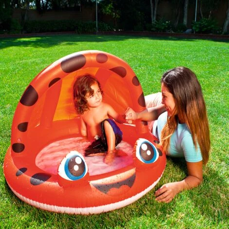 Auvent / parasol gonflable intégré pour que les bébés puissent se rafraîchir dans la piscine tout en étant protégés du soleil.