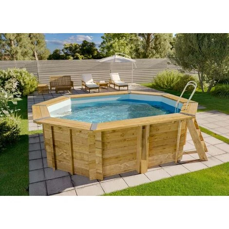 Profitez des plaisirs d’une piscine chez vous ! La piscine ovale en bois massif Bahamas sera un vrai point fort de votre jardin. Les madriers extérieurs de 46 mm d’épaisseur ont été fabriqués en pin sylvestre français certifié PEFC et imprégnés en autoclave de classe IV. Cela donne à la piscine sa couleur rouge-brun typique et lui confère en outre une finition de haute qualité. Si bien que nous offrons une garantie de 10 ans contre le pourrissement du bois et les attaques d’insectes. Décidez vous-même de la manière dont vous souhaitez installer la piscine. Que ce soit en tant que piscine hors sol, semi-enterrée ou entièrement enterrée. L’échelle en acier inoxydable vous permet d’accéder facilement à la fraîcheur de l’eau et le système de filtration inclus maintient votre piscine propre.