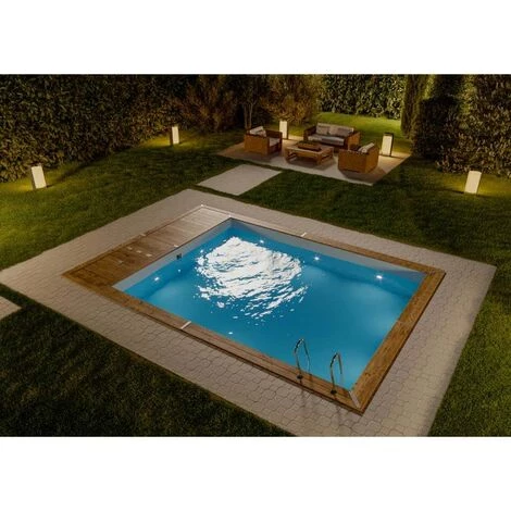 Profitez des plaisirs de la piscine chez vous ! La piscine rectangulaire en bois massif Madeira sera un véritable point fort dans votre jardin. Les madriers extérieurs de 46 mm d’épaisseur ont été fabriqués en pin sylvestre français certifié PEFC et imprégnés en autoclave de classe IV. Cela donne à la piscine sa couleur rouge-brun typique et lui confère en outre une finition de haute qualité. Si bien que nous offrons une garantie de 10 ans contre le pourrissement du bois et les attaques d’insectes. Décidez vous-même de la manière dont vous souhaitez installer la piscine. Que ce soit en tant que piscine hors sol, semi-enterrée ou entièrement enterrée. L’échelle en acier inoxydable vous permet d’accéder facilement à la fraîcheur de l’eau et le système de filtration inclus maintient votre piscine propre.