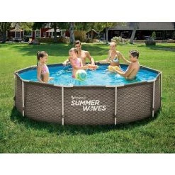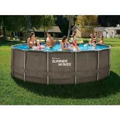 Piscine Tubulaire Ronde Active Frame Pool Effet Rotin 4,88 X 1,22 M – Summer Waves – Marron