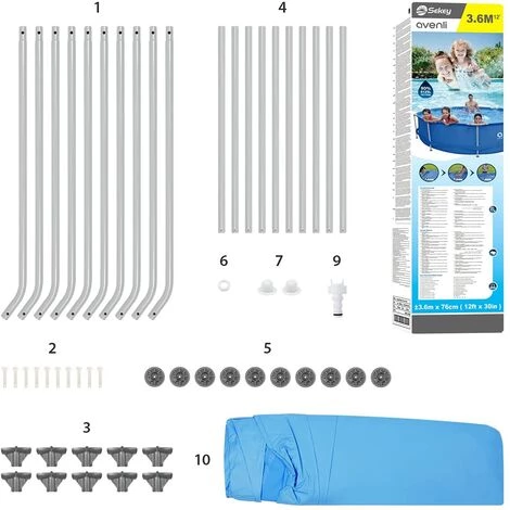 - L’ensemble de piscine de marque de Sekey est une piscine fantastique pour la famille avec une profondeur de 76 cm. Parfait pour les exercices de natation, jouer avec les enfants, recevoir des invités ou simplement se prélasser au soleil. Le cadre en acier inoxydable peut être assemblé à l’aide de simples connecteurs en forme de T et de supports en forme de C. Tous les accessoires sont bien pensés et sont faciles à assembler. Les instructions d’installation et une liste d’accessoires sont incluses dans l’emballage. Si vous avez des questions, n’hésitez pas à nous contacter.