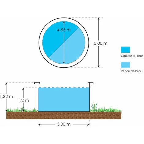 – Piscine mĂ©tal et rĂ©sine ronde. Diam. 5,00 m. 1,32 m. de haut.