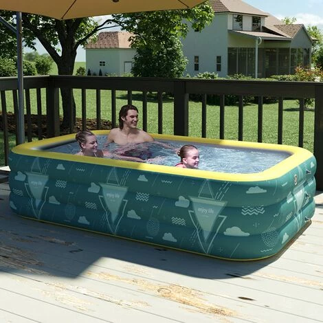 1. Piscine gonflable familiale : la piscine de loisirs gonflable à une couche inférieure plus épaisse, qui peut empêcher efficacement le sol de se refroidir, éviter la baisse rapide de la température de l’eau et empêcher le bébé de tomber en nageant ou en jouant dans la piscine .