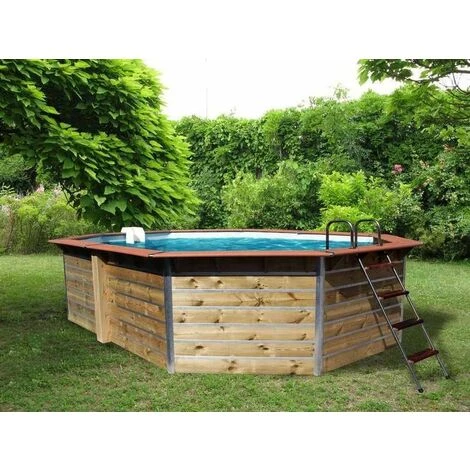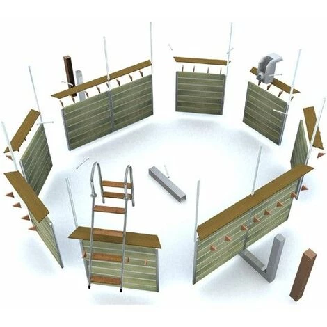 Piscine LUCON en bois haut de gamme, facile et rapide à monter, assemblage sans outils grâce à ses panneaux prémontés, ne nécessite aucun percement du liner. Installation sur dalle en béton de 15cm d’épaisseur avec kit acier à intégrer dans le béton