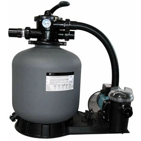 - Filtration : Ensemble de filtration sur platine avec pompe 0,43Kw équipée d’un pré filtre, filtre à sable PVC 8 m3/h, vanne 6 voies et matière filtrante (sable) fournie