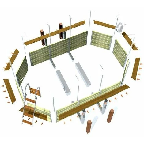 Piscine SIAYAN en bois haut de gamme, facile et rapide à monter, assemblage sans outils grâce à ses panneaux prémontés, ne nécessite aucun percement du liner. Installation sur dalle en béton de 15cm d’épaisseur avec kit acier à intégrer dans le béton.