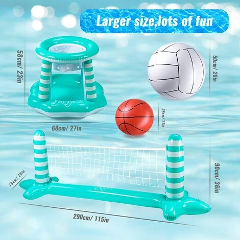 - 【Super Value Pool Toys】 Vous obtenez un ensemble de volleyball amusant et de basket-ball. Avec ce jouet de piscine flottante, vous pourrez profiter des jeux de volleyball et de basket-ball avec votre famille et vos enfants!